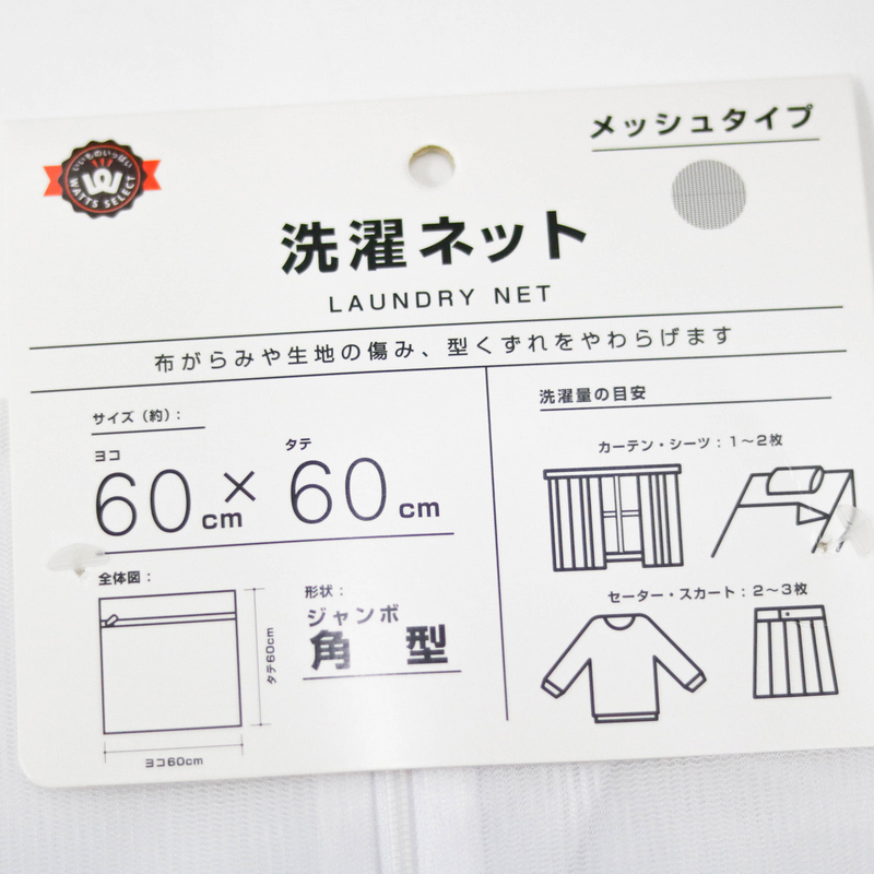 Túi lưới với kích thước lớn 60x60cm, dùng giặt nhiều quần áo, chăn màn, khăn tắm. Lưới mịn giúp ngăn bụi vải và xơ bông lọt vào bên trong, bảo vệ quần áo tối đa trong quá trình giặt giũ.